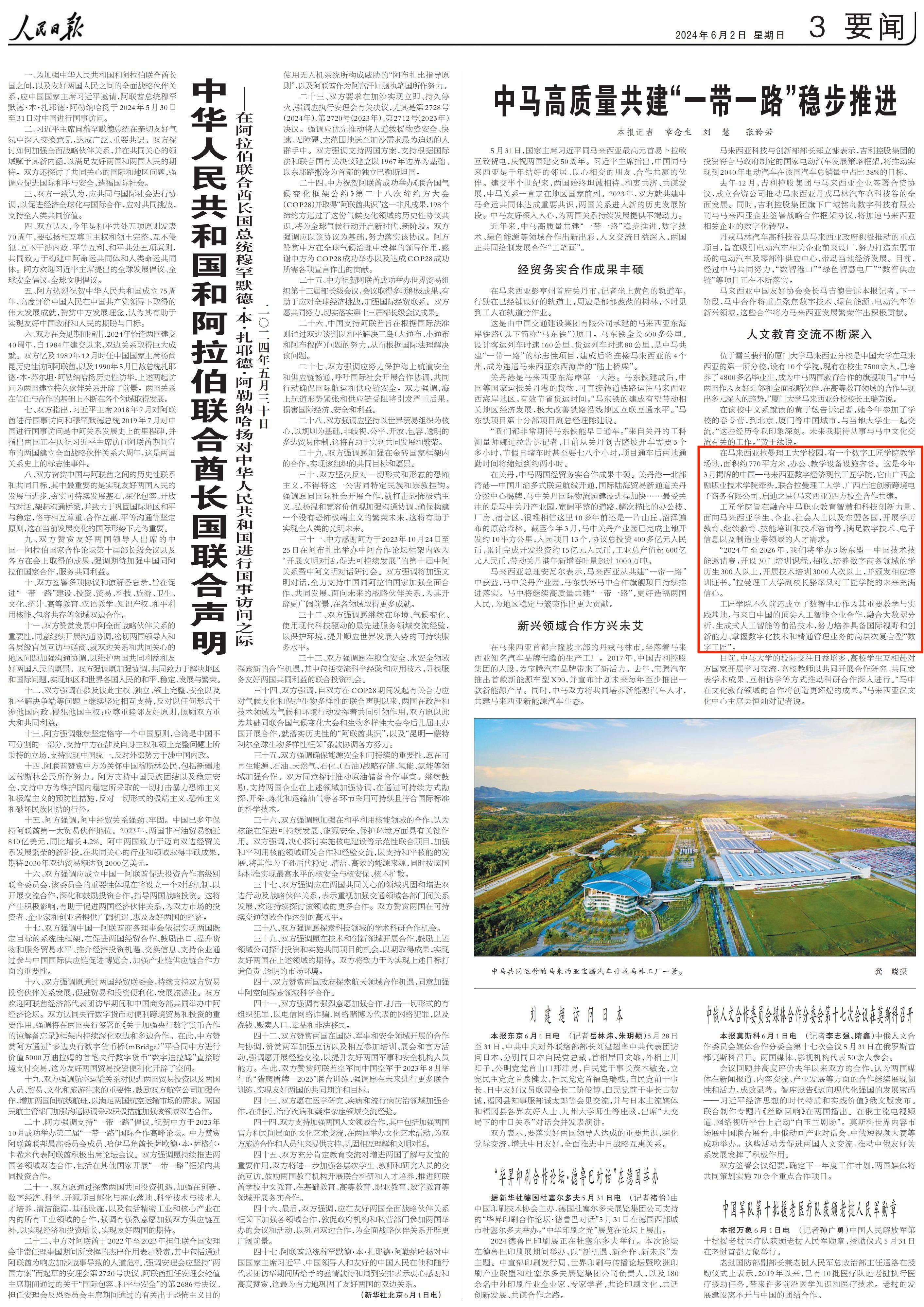 6月2日,《人民日报》在要闻第三版刊发报道《中马高质量共建“一带一路”稳步推进》,文章在聚焦“中马人文教育交流不断深入...